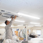 工場事務所様の新規天井カセット式エアコンの導入例を紹介しています。